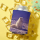 Stunning arctic fox sat in the snow casting a shadow in the dimming light.