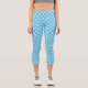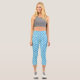 Ladies Capri Leggings in reflective turquoise squiggle shapes on a blue base colour.