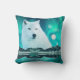 Arctic wolf and magical night with northern lights throw pillow