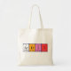 These bags were super cute (I purchased 3). The material is more of a canvas look & feel. The colour of the bag is slightly off white, but the letters look exactly as pictured. I took 3 photos in different lighting. Would recommend! I liked how there was an option to choose the font and colour of the name. The words are legible and the colours are exactly as pictured.
