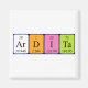Ardita spelled out as Ar D I Ta (Argon Deuterium Iodine Tantalum) on a magnet for the scientist in you.