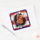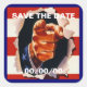 Square save-the-date sticker with a vintage 1940s image of the hand of Uncle Sam, with his pointing finger, tearing through red and white stripes on blue. Customize with the date of your party. See matching invitation, favour tag and label. See the entire Patriotic 40s Sticker collection in the INVITES | Stickers & Labels section.