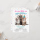 Adorable "are you kitten me right meow" birthday party invitations. Features 3 cute kittens in colourful party hats with big suprised expressions with falling confetti. Great for a girl or boy! All wording can be changed. To make more changes go to Personalize this template. On the bottom you’ll see “Want to customize this design even further? Click on the EDIT using Design tool. From there you can change some of the fonts & some colours, move things around or delete what you need. A little midjourney generativecontent combined with hand drawn elements.