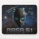 Area 51 design for Conspiracy Theorists, three UFOs and an alien head with glowing eyes.