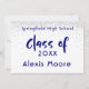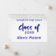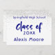 Célébrez votre diplômé préféré avec cette invitation moderne et sophistiquée en argent, marine et blanc. Les paramètres de modèle vous permettent d'ajouter le nom du diplômé, l'école secondaire et l'année de la classe de diplôme. Les mots "Classe de" ont été rendus dans la marine avec une police manuscrite décontractée et moderne de ma collection. Elles ont été transformées en un graphique qui peut être redimensionné ou repositionné comme vous le souhaitez. Tous les autres textes ont été mis en place dans le modèle à l'aide d'une police polyvalente et moderne dans la marine; la police et les tailles peuvent être changés au besoin. // Sur l'avant et l'arrière de la carte blanche est un graphique représentant des confettis argentés. // Conçu par Melody Watson pour Paper Muserie