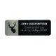 Ces étiquettes d'adresses de retour robustes et modernes sont idéales pour la chasse d'invitations thématiques, les guides de chasse et les clubs de chasse. Ils présentent un cerf en berne sur un arrière - plan argenté. L'adresse et les noms peuvent être redimensionnés pour qu'ils s'adaptent au texte plus long ou plus court. L'adresse et les noms sont assis sur un arrière - plan de plaque de diamant noir.