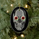 Un crâne d'argent mal regardant avec des globes oculaires rouges imaginaire ornement personnalisé. Cliquez sur Personnaliser pour ajouter un message personnel au verso. Si vous avez besoin d'aide ou avez des demandes, veuillez me contacter. Je peux aussi ajouter l'image à l'arrière de l'ornement. Cette image est disponible sur de nombreux produits dans ma galerie.