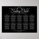 Faites de votre réception de mariage une belle avec ce tableau de sièges. Il présente un design simple mais élégant avec du texte gris argenté pâle sur un arrière - plan noir avec une bordure florale en faux feuille argent. Ce graphique montre les affectations de table afin que vos invités aient un temps facile à trouver la bonne table.