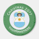 Round magnet for Christmas decor featuring an angel dressed in the flag of Argentina. The angel is found inside a white fractal of squiggly squares with a background of green squiggly squares. Add your own text, if you wish. Personalize with a name and customize with the year. Fun stocking stuffer. Honour your heritage during the holiday season.