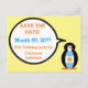 Ms. Penguin is all decked out in her Argentine flag vest and ready to shout the date of your party or other event. Customize the SAVE THE DATE card with personalized details like type of party, date, etc. You can change the background colour to fit your party's theme. Change the colour of the text, too if you like. Just let Ms. Penguin shout your party details.