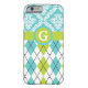 Argyle and damask pattern green, aqua monogram Case-Mate iPhone case