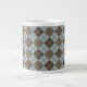 Argyle Pattern in Blue and Taupe Large Coffee Mug