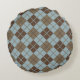Argyle Pattern in Blue and Taupe Round Pillow