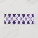 Argyle Pattern, Rhombus Pattern, Purple Argyle Mini Business Card