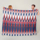 Argyle Pattern White Blue Red Ikat Technique Fleece Blanket