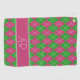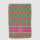 Argyle Plaid Pink Green Custom Monogram Initials Golf Towel