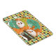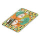 Our Argyle Snowmen Holiday personalized flexi magnet features a snowman couple in top hat, winter hat, striped scarf, and carrot noses on an orange, teal, mustard, brown, and cream argyle pattern background, little polka dots on orange with snowflakes of white, and a teal banner you can easily personalize with a name or other text.