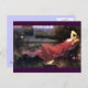 Vintage painting of Ariadne in a classical Greek setting. Laying on a bench in the outdoors with a leopard rug and her feet. 19th century artwork by John William Waterhouse.