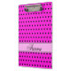 Striking Pink Clipboard With Black Hearts Pattern - And Your Custom Name/ Text