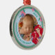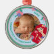This is a precious, rounded Christmas ornament, perfect for commemorating a baby's milestone holiday season. The ornament features a sweet, personalized baby photo at the center, surrounded by a lovely frame. The design is charmingly accented with Disney's Princess Ariel from The Little Mermaid, complete with flowing red hair and delicate flowers. The edge is inscribed with personalized text marking a First Christmas and the specific year. This stunning piece is a delightful, lasting keepsake to celebrate a baby's first magical Christmas!