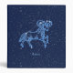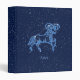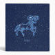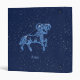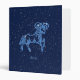 Binder featuring the zodiac symbol for Aries in soft silver blue, overlaid with the stars of the constellation, against a starry sky background of deep midnight blue