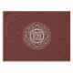 This mandala was designed for the zodiac sign, Aries, depicting a red jasper stone in the centre surrounded by elements representing the sign, such as the symbol for the sign, the constellation, and the alchemical symbol for Fire, as well as filigree vines and weaves wrapping it all into a solid image in shades of red, silver, and brown.