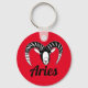 Aries Ram Symbol Astrological Sign keychain designed by Nisha Prabhu CuteHomeGifts. This design features Aries zodiac sign sun sign moon sign astrological sign Aries ram symbol with text. Fully Customizable. Personalize with your name. The Aries horoscope symbol is the Ram, a sheep with large curving horns. Aries is a fiery sign, ruled by Mars. Red can bring you success and good luck in any of your ventures. Red symbolizes purity, aggressiveness, energy and mobility, and can bring you the blessings of Mars. The Aries horoscope symbol is the Ram, a sheep with large curving horns. For the believers of destiny written in the stars, this Aries Horoscope design to bring good luck and fortune for anyone born within March 21 to April 19. A zodiac sun sign art for astrology buffs, horoscope fans, and zodiac symbol lovers.