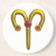 ARIES ZODIAC BIRTHDAY JEWEL RED RUBY,Gold ,white Coaster