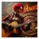 The musician Zodiac Aries with her vibrant red hair rocks out on her guitar as the archer takes a new modern look with this design.