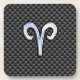A silver chrome like Aries zodiac symbol on a carbon fibre design texture print background. A modern urban racy design for a great custom birthday gift idea.
