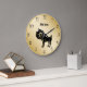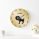Aries zodiac wall decor clock with beautiful Aries astrology symbol that has a gold glitter style edge, along with text you can personalize if you wish. Decorate your walls with your personality in style. Designed for a kitchen, bathroom, living room, or den.