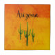 Arizona Desert Southwest ceramic tile, with a green saguaro cactus design on an orange background. With black typography lettering, you can add your own message. A fun kitchen decor item with a southwestern flavour.