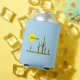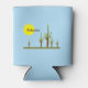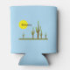 Saguaro Cactus southwest can cooler, with a group of saguaro cacti under the Arizona sun, with a blue background and a bright yellow sun. With bold brown lettering, this item can be customized with your own text.