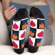 Fun socks for proud Arizonans, featuring a unique chequered pattern with red hearts on the white squares, and a map of Arizona filled in with the Arizona state flag on the black squares. These can be worn with pants or shorts to show your love for Arizona and your pride in The Grand Canyon State.