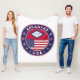 Badge of Arkansas with flag of Arkansas and flag of USA colours, rounded shape.