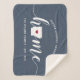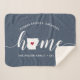 Show some home state pride with this cute rustic blue throw blanket featuring "home" in white calligraphy script lettering with a silhouette map of the state of Arkansas standing in for the letter "O." A red heart illustration inside the state map completes the design; you can change the position of the heart to your home city by opening the design tool and dragging the heart shape to your favourite spot. Personalize with your home city, family name and year established to create a perfect and memorable housewarming gift or addition to your new home.
