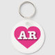 This keychain features a vibrant hot pink heart containing the bold, white, upper case letters AR, the official abbreviation for Arkansas, the natural state.