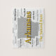 Arkansas state pride image including map silhouette with cities, towns, the Natural State..