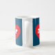 This mug features red hearts containing the bold, rounded, white lower case letters ar, a playful version of the abbreviation for Arkansas, the natural state.