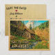 Vintage Arkansas Save The Date postcard in fun retro Ozarks mid-century style. It features a rustic woody nature landscape with a wood cabin and water wheel mill, and a pretty creek stream with fall leaves for an autumn or end of summer feel. This Arkansas Save The Date postcard will be perfect for a country wedding or nature and camping wedding.