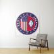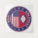 Badge of Arkansas with flag of Arkansas and flag of USA colours, rounded shape.