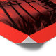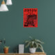 This graphic poster casts Arkham Asylum, the notorious psychiatric hospital from the Batman universe, in a haunting light. The entire scene is bathed in a sinister red hue, enhancing the gothic architecture and barren trees that encircle the asylum, creating a sense of dread and foreboding. The moon glows ominously in the background, illuminating the twisted branches that seem almost to reach out from the darkness. Bold, stylized lettering spells out "ARKHAM ASYLUM" at the top, with a clever tagline "RESTRICTED - Requires Accompanying Hero" that adds a playful yet dark twist to the piece. This artwork brilliantly captures the eerie essence of one of Gotham's most infamous landmarks, making it a striking collectable for fans of the darker side of the Batman saga.