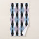 Un design inspiré du milieu du siècle avec un motif en diamant arlequin en bleu, lilas poussiéreux, noir et blanc.