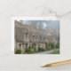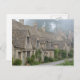 Postcard of the Arlington Row, honey-coloured weavers cottages in the morning fog in the town of Bibury, the Cotswolds in England, UK.