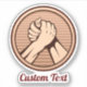 Bronze round medal with two hands in arm wrestling. Custom text.