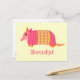 Cute pink and yellow armadillo on postcard. Says Howdy, buy you can customize the message.