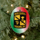 Ornement de Noël du monogramme ROTC. Cette décoration est décorée d'un côté avec le patch du Corps d'instruction des officiers de la Réserve, et de l'autre avec le Père Noël.
