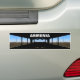 View from inside old abandoned bus with Mount Ararat in horizon bumper sticker