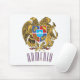 The shield is held by a lion and an eagle, both symbols of historic Armenian royalty that goes back to the first Armenian Kingdom of Ararat (Urartu) in the latter half of the second millennium BC. The centre of the shield includes the Biblical establishment of Armenia after the Great Flood and Noah's Ark resting on top of Mount Ararat, the sacred symbol of Armenia and the Armenian nation. Subsequently, the centre portion representing Noah's Ark and Mount Ararat is joined by the insignias of the four Armenian dynasties that followed the Aramian House of Ararat in the VIth century BC: - The bottom left portion represents the Artaxiad Royal House, the insignia is particularly famously represented in the Armenian silver and gold coins of the Armenian emperor Tigranes the Great of the Artaxiad Dynasty in the early half of the Ist century BC. - The upper right portion represents the Armenian Royal House of the Arsacids, among whose most famed representatives was Tiridates III who, with the support of Catholicos St. Gregory the Illuminator, made Armenia the first Christian nation in 301 AD. - The upper left portion represents the Royal House of the Bagratids, under whose gifted leadership in the Middle Ages, Armenian culture blossomed, represented with the grandeur of towns such as Ani - the Town of 1001 Churches - as it was called by its contemporaries in praise of the town. The Town of Ani was called "the Jewel of the East", and became one of the most important cultural, social and commercial centres of its time. The town was sacked and looted with the coming of the Turco-Mongol invasions from Central Asia led by the nomadic chieftain Alp-Arslan in the XIth century. - The bottom right portion represents the Rubenid Royal House of Cilician Armenia. Cilician Armenia or Little Armenia as it was known to Western historians was to the west of historic Greater Armenia on the beautiful shores of the Mediterranean Sea. Cilician Armenia under the gifted dynasties of the Rubenids and Hetumids, with prominent representatives such as Leon the Magnificent and Hetum I became a major commercial and cultural centre with its beautiful towns such as the capital of Sis and renowned town-ports such as Ayas. The bustling port-town of Ayas had in the XIIth and XIIIth centuries Armenian, French, Greek, Jewish, Venetian, Genoan and Pisan boroughs that were populated by merchants and craftsmen doing business with people from all over the world, from all walks of life. The town-port was obliterated and destroyed in the XVth century by the Ottoman Turks. A vertically pointed sword breaks the chains of foreign oppression and the shield symbolically represents the guardianship of the Armenian State. The symbol of wheat in the lower part of the coat of arms represents the sacredness of the soil while the olive branches represent the aspiration principles of the Armenian people to goodwill and peace. Gevork Nazaryan, 22 March 2001