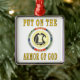 I was impressed by the quality and size of the ornament. Metal framing and design were perfect. Definitely recommend any of the metal framed ornaments. I ordered different ones all of the same quality and personalized professionally. Perfect No pictures as they were all gifts